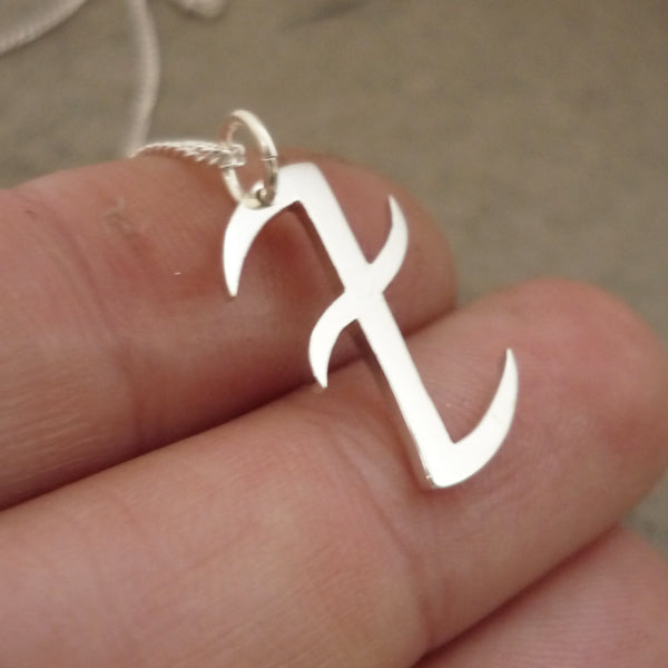 The pendant is hand-cut from 1.3mm thick sterling silver plate, and is about 12x17mm in size.