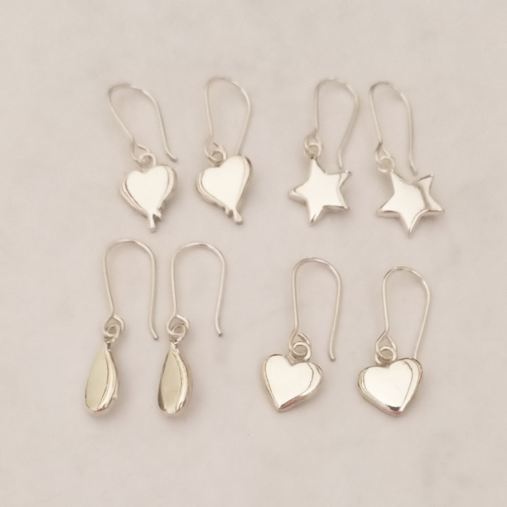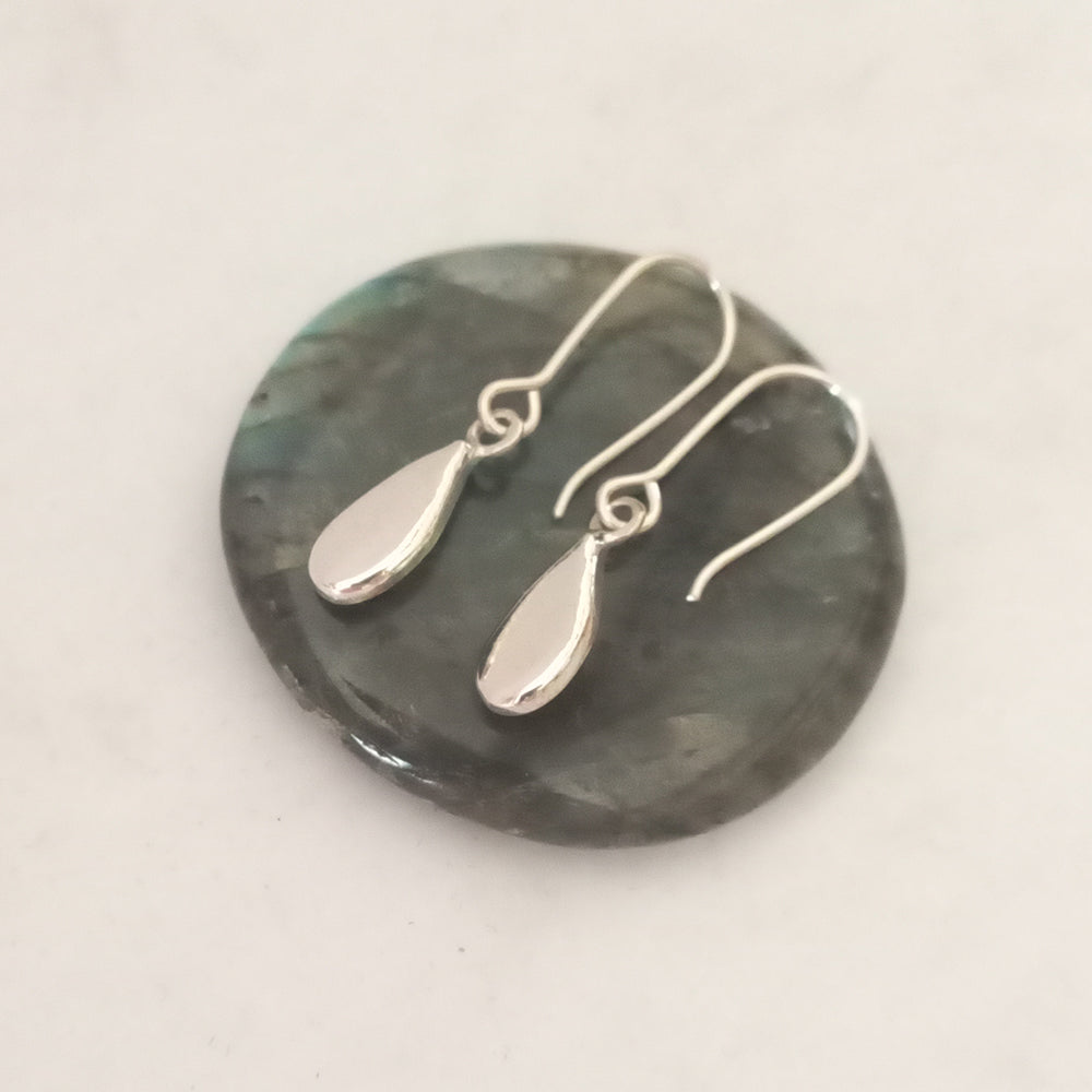 Sterling silver solid domed earrings, with short drop earring hooks.