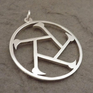 This pendant is cut from 1.4mm thick silver, and measures approx. 30mm across.