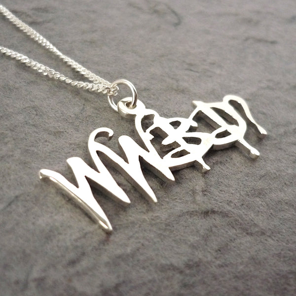 Sterling silver, sawed out by hand (by me!), and just oh-so-cool for a fan!